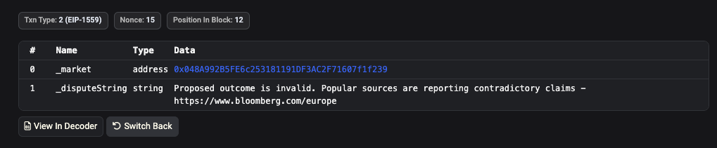 Below is an example image of the data in a dispute transaction on etherscan:
